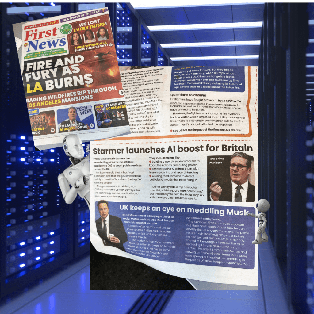 Let’s talk Data Centres – Pixie Van Dimple and I were reading our First News newspaper today, our trusted news source – and we saw an article about how Kier Starmer, our Prime Minister, is investing a lot of money in Artificial Intelligence ‘to boost public services across the UK’.