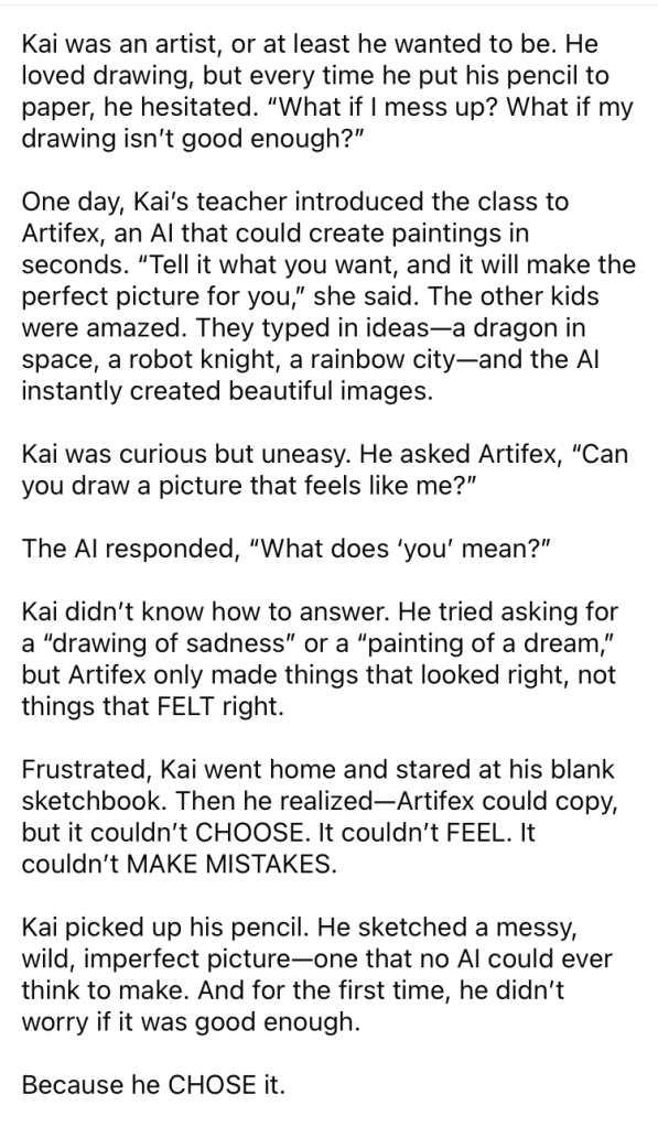 Back to the question – what is the difference between AI and humans? Well.. Pixie and I did ask AI (ironically) to come up with a story to help us understand this quite difficult concept, which I think it has done very well. It also demonstrates how exceptional each of us are as humans, growing by day, layer by layer, our feelings, experiences and subtle nuances shaping us into the people we become, intertwined with others forming complex relationships of all kinds. No tech can replace that uniqueness… we are extraordinary – don’t forget that! (I was inspired by existential thinking for this post)..